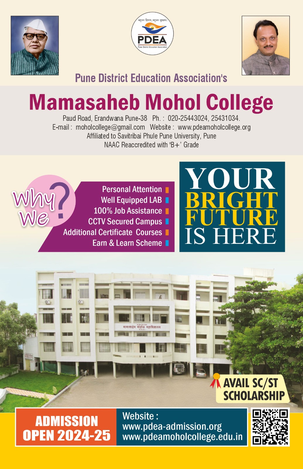 | 2024-01-20 | NSS 2024 Activity plans | -- | मामासाहेब मोहोळ महाविद्यालय विद्यापीठस्तरीय कार्यशाळा-1.pdf |